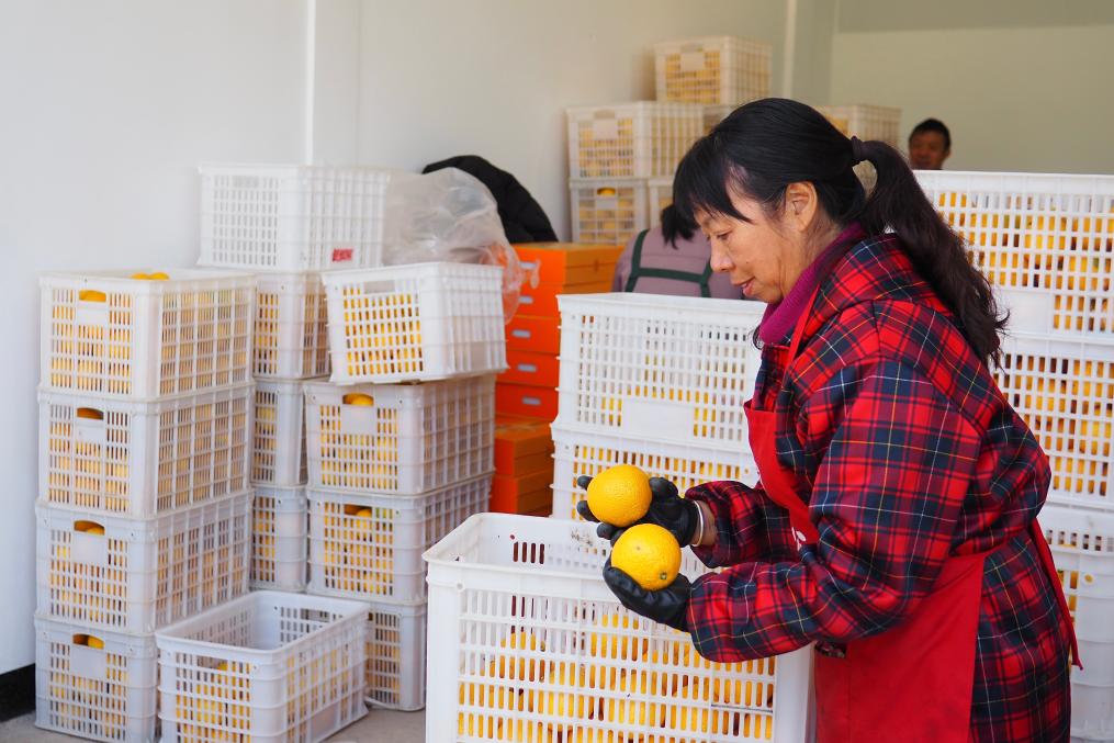 在浙江省庆元县竹口镇黄坛水干果园区,一名工人在分拣甜桔柚。新华社记者 刘梓漪 摄