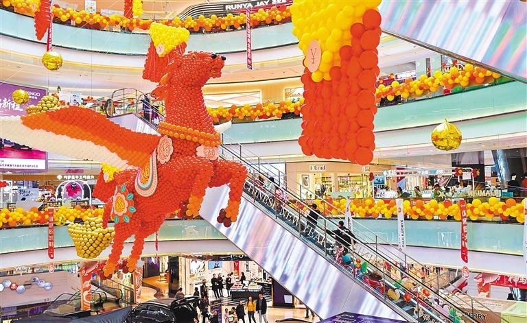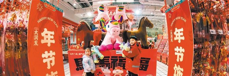2月6日,四川省南充市高坪区一购物中心,福字、马年挂件等装饰品将卖场装扮得红红火火,年味十足。 杨 波摄(中经视觉)
